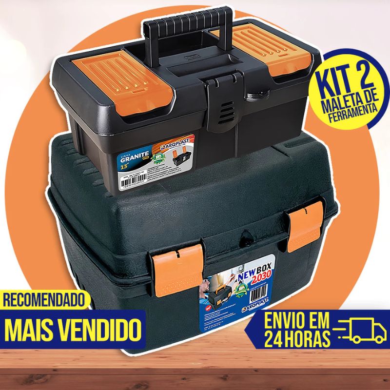 Kit 2 Maletas Caixa de Ferramentas New Box 2030 / Granite 13 Pro Grande Reforçada Organizadora Com Divisória Resistente